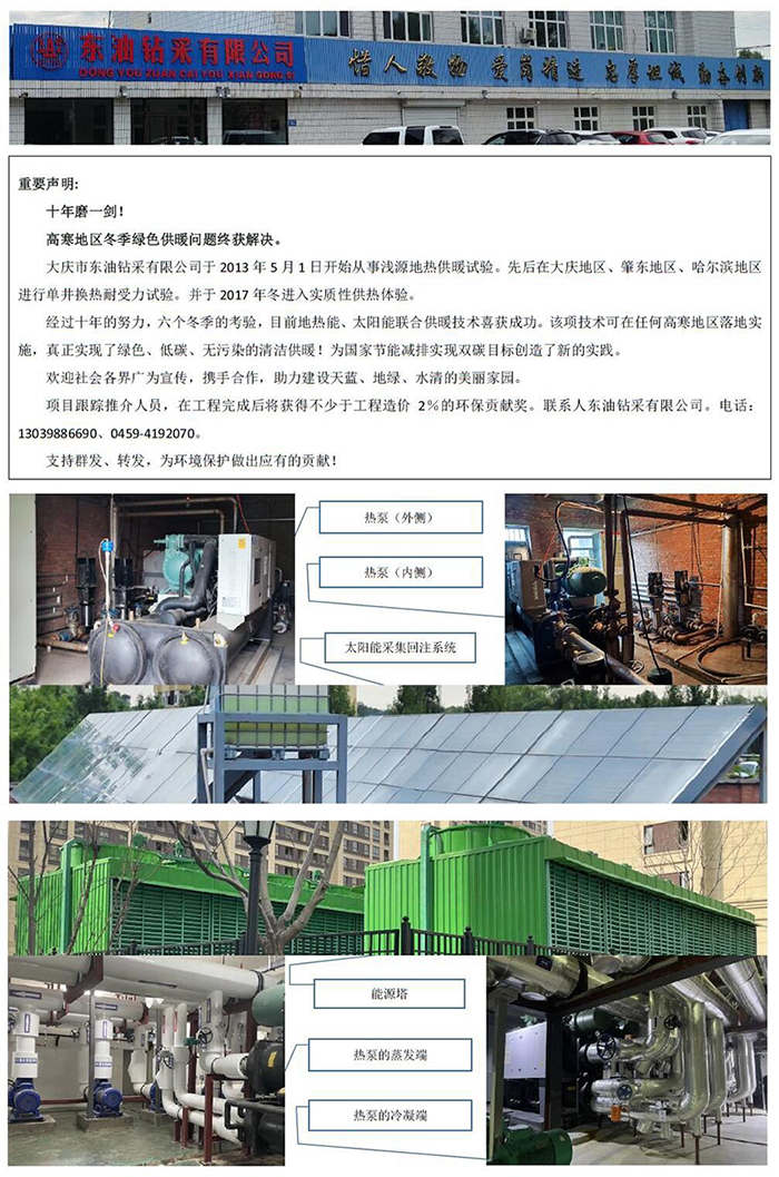 大慶市東油鉆采有限公司的地?zé)岷吞?yáng)能取暖解決方案(2023年6月15日發(fā)布)
